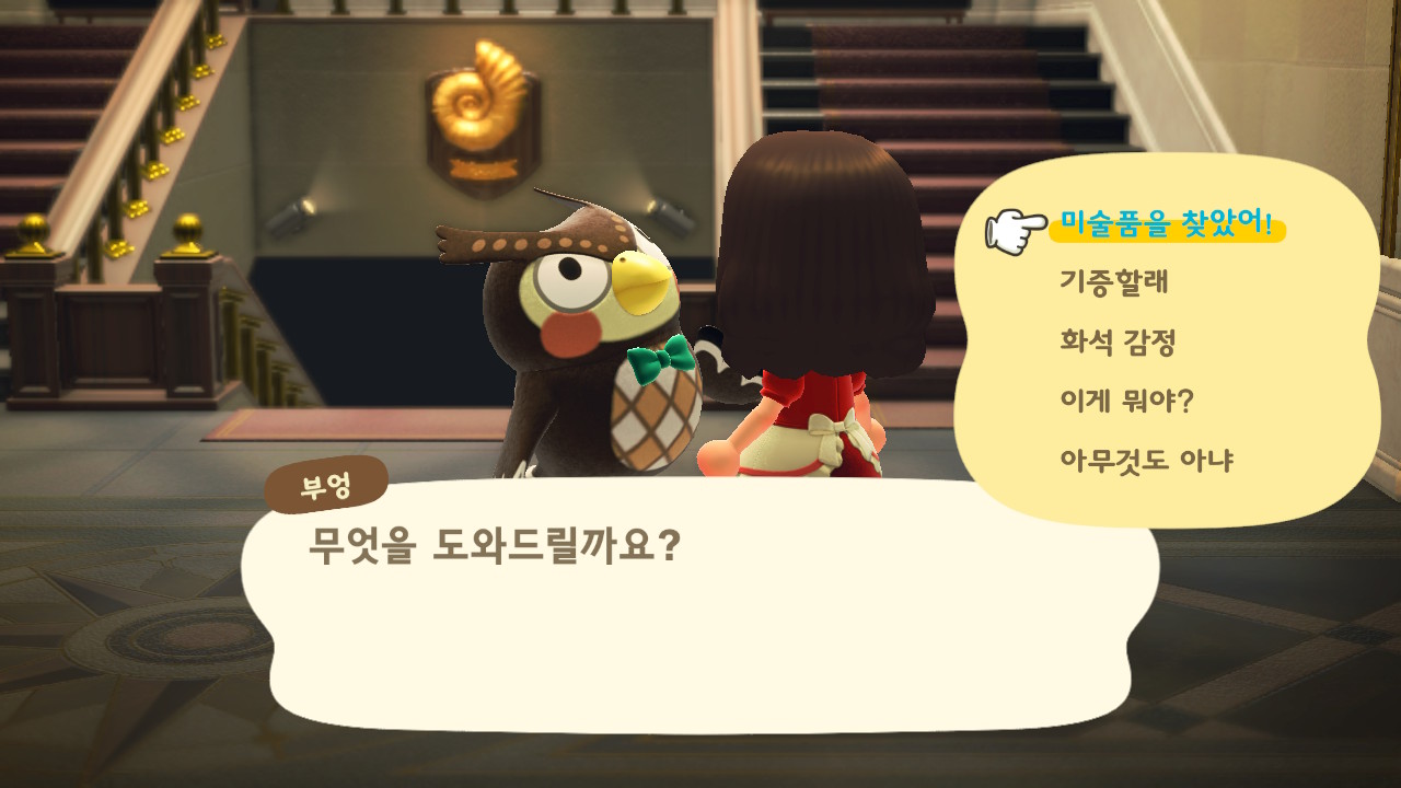 여욱이에게 미술품을 구입합니다. 여욱이가 판매하는 미술품은 진품과 가품이 섞여 있는데 처음으로 판매하는 미술품은 모두 진품이라고 하니 마음놓고 구입하면 됩니다. 미술품을 구입하여 박물관에 기증하면 미술품 전시실 공사를 시작하고 다음날 미술품 전시실이 추가됩니다.