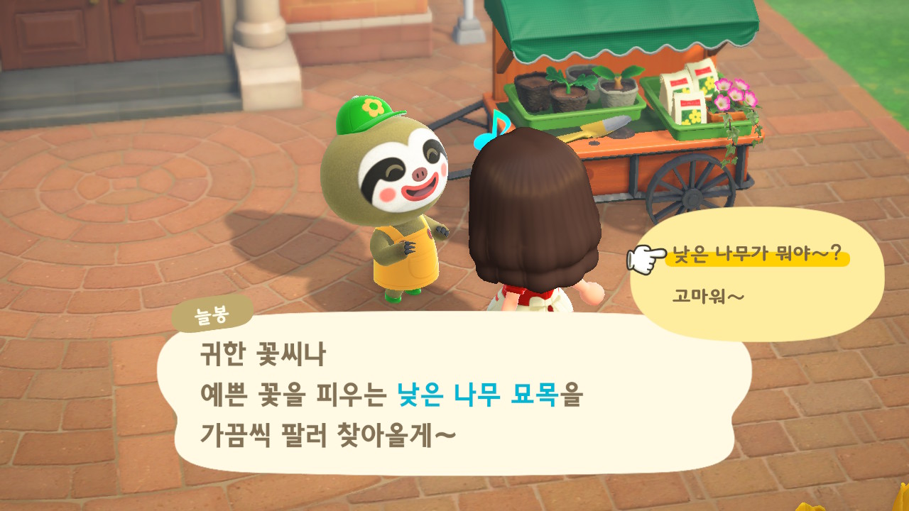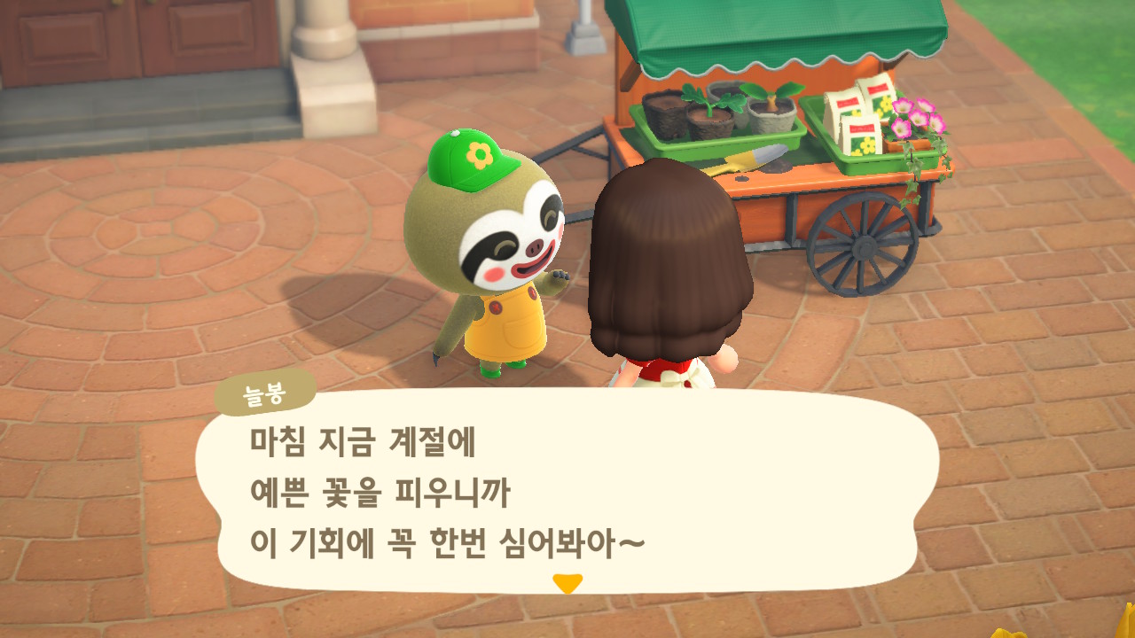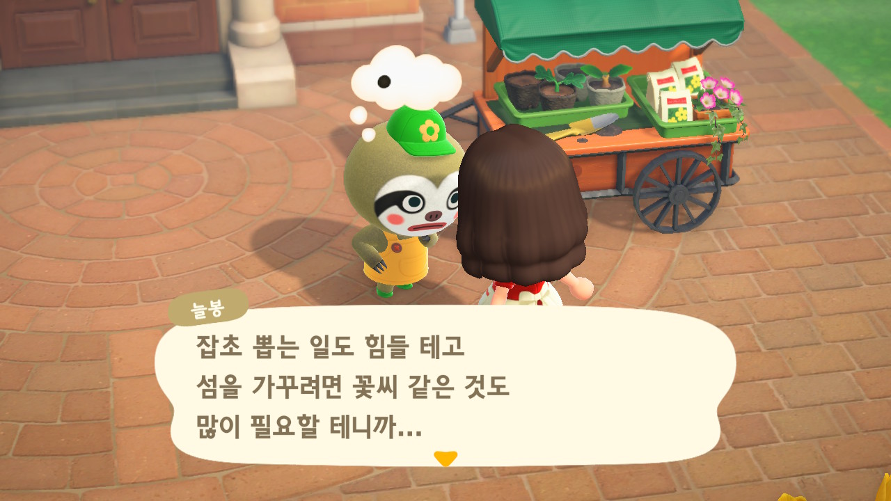 늘봉이는 9일 차에 처음 방문했어요. 호박 모종, 꽃 씨앗, 낮은 나무 묘목을 판매하고 잡초를 매입합니다.