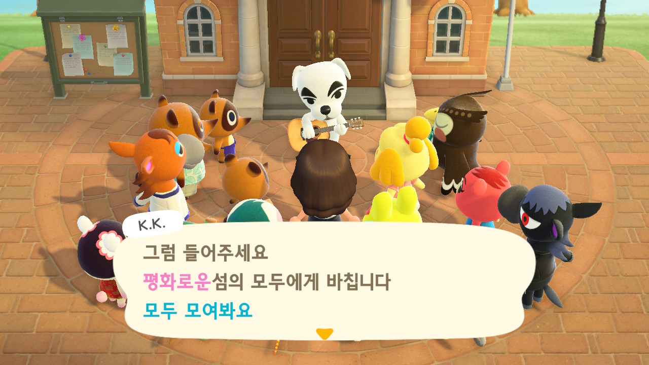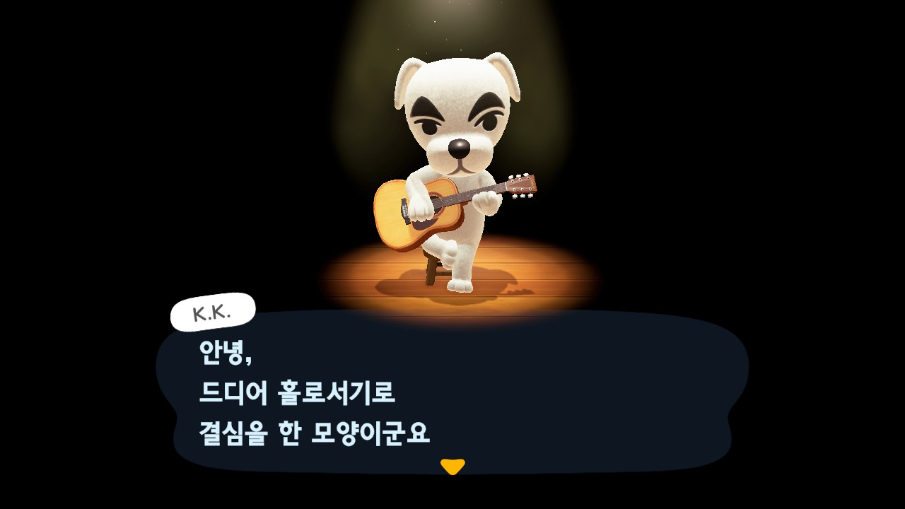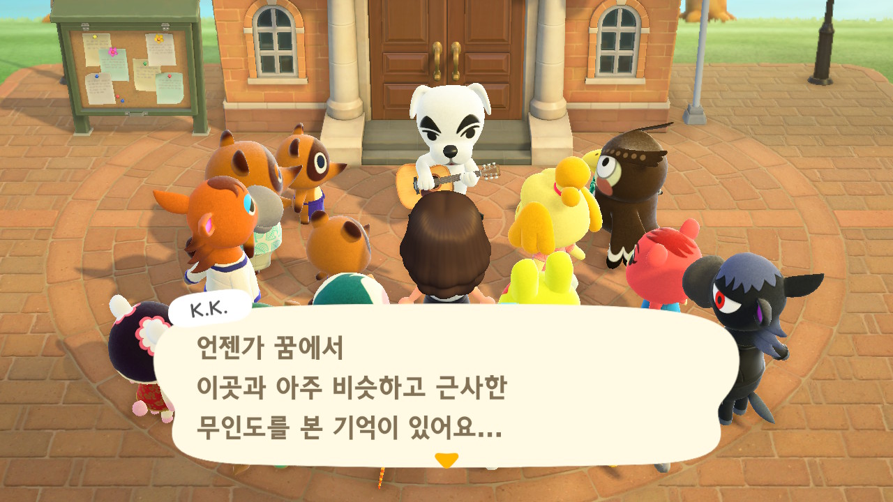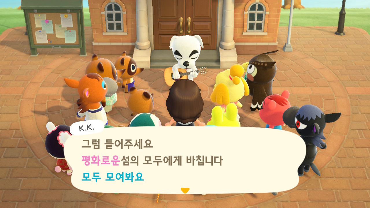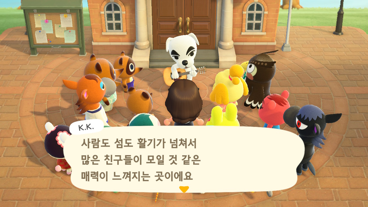 이후 주민 10명이 생기고 섬의 평판 별점 3개를 얻으면 K.K.가 라이브 공연을 하러 와요. 저는 15일 차에 라이브를 열 수 있었어요.