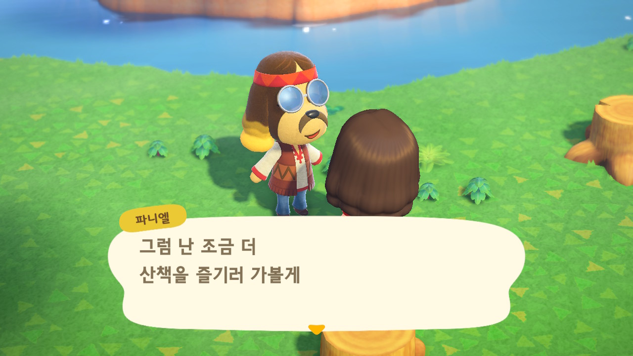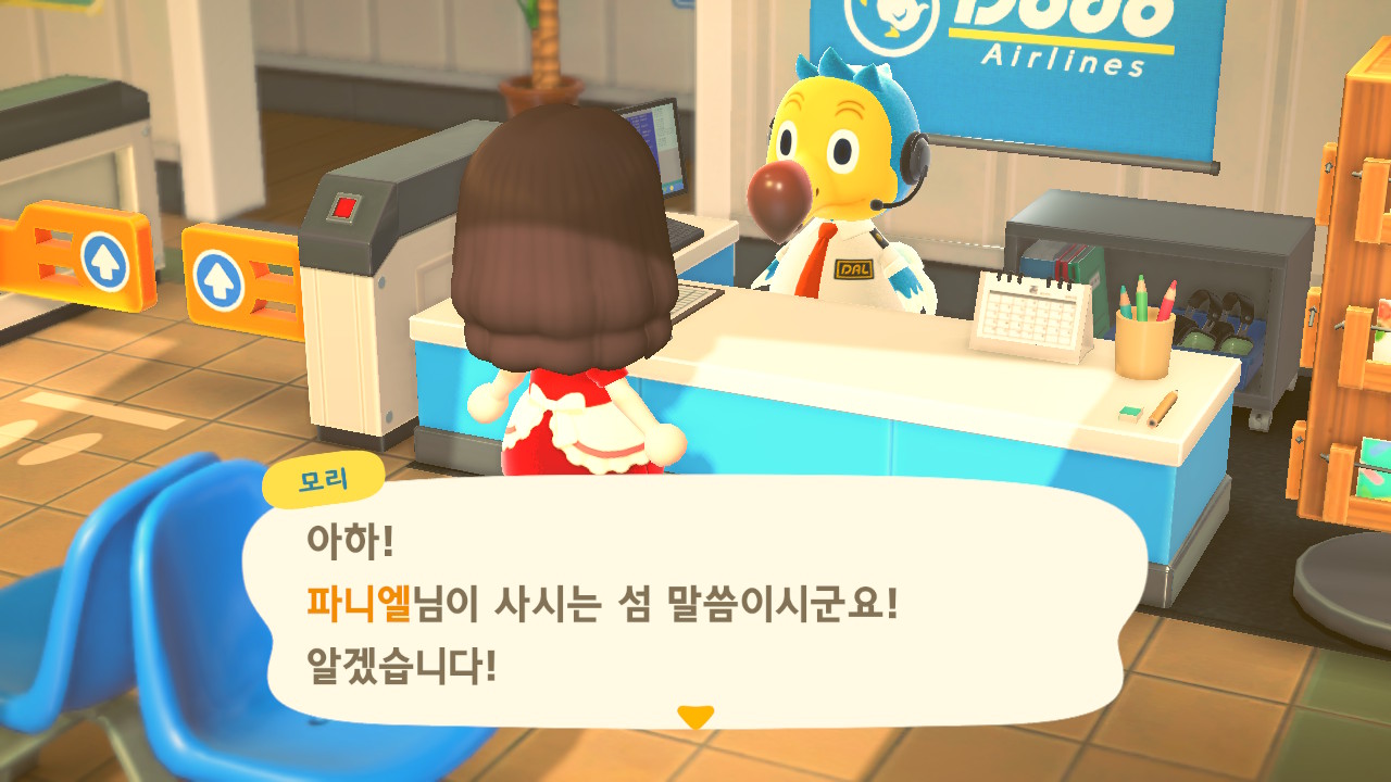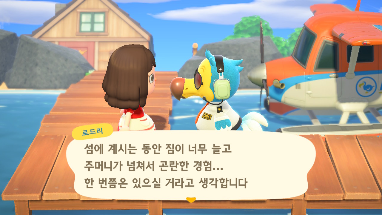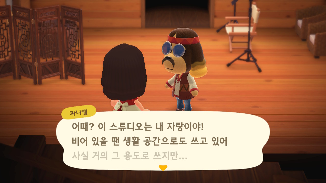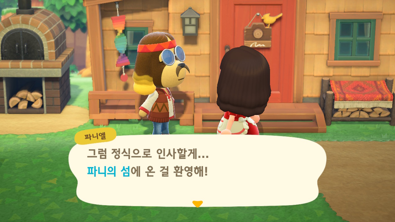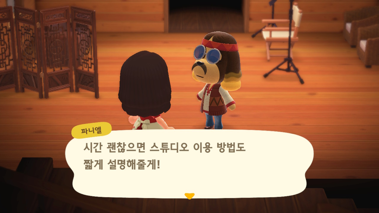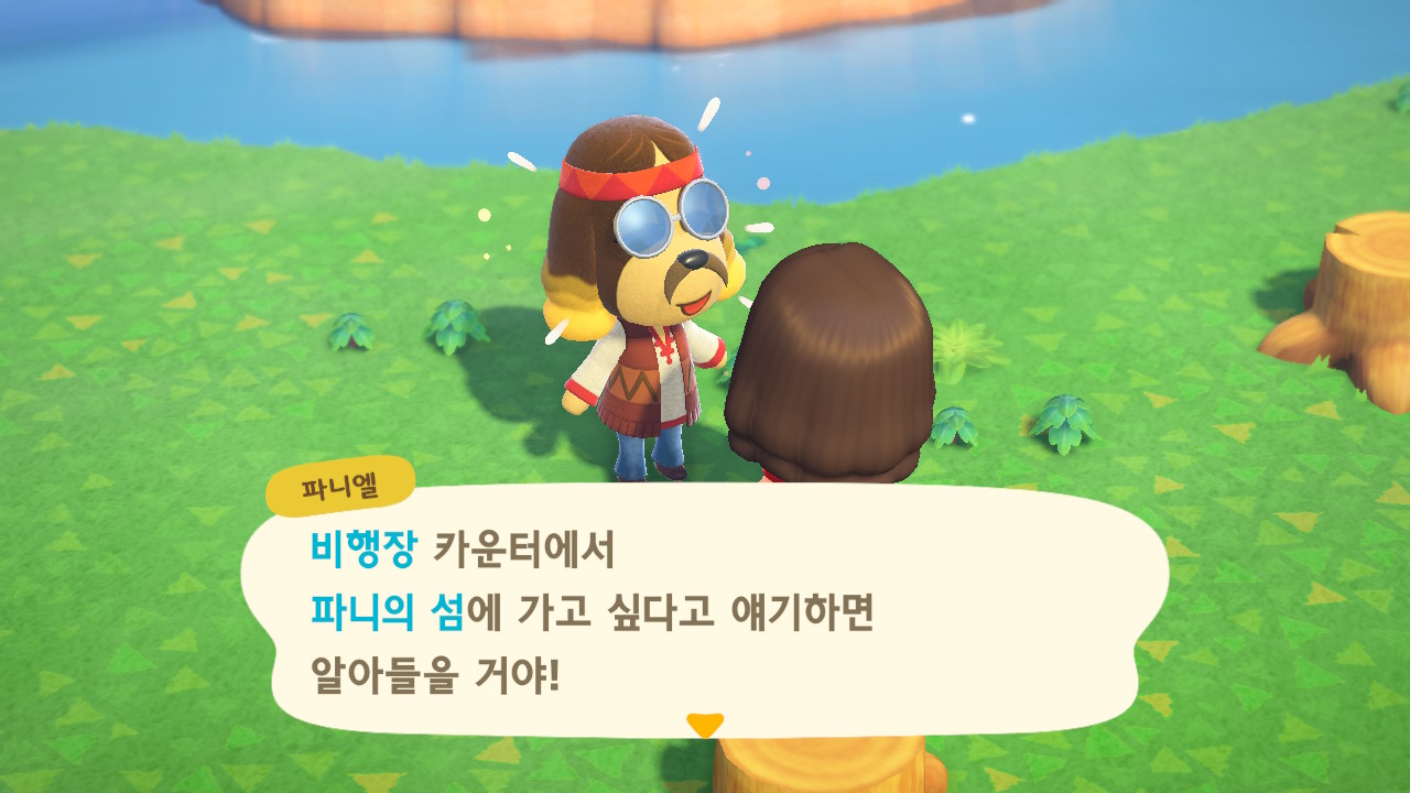 3일차에 파니엘이 나타났어요. 비행장에서 파니의 섬에 가고 싶다고 하면 갈 수 있고, 촬영 스튜디오를 꾸밀 수 있습니다. 초기 주민인 김말이 미랑이와 기념 사진을 찍어봤어요. 사진을 찍고 섬으로 돌아오면 너굴포트에서 해당 주민의 포스터를 구입할 수 있어요.