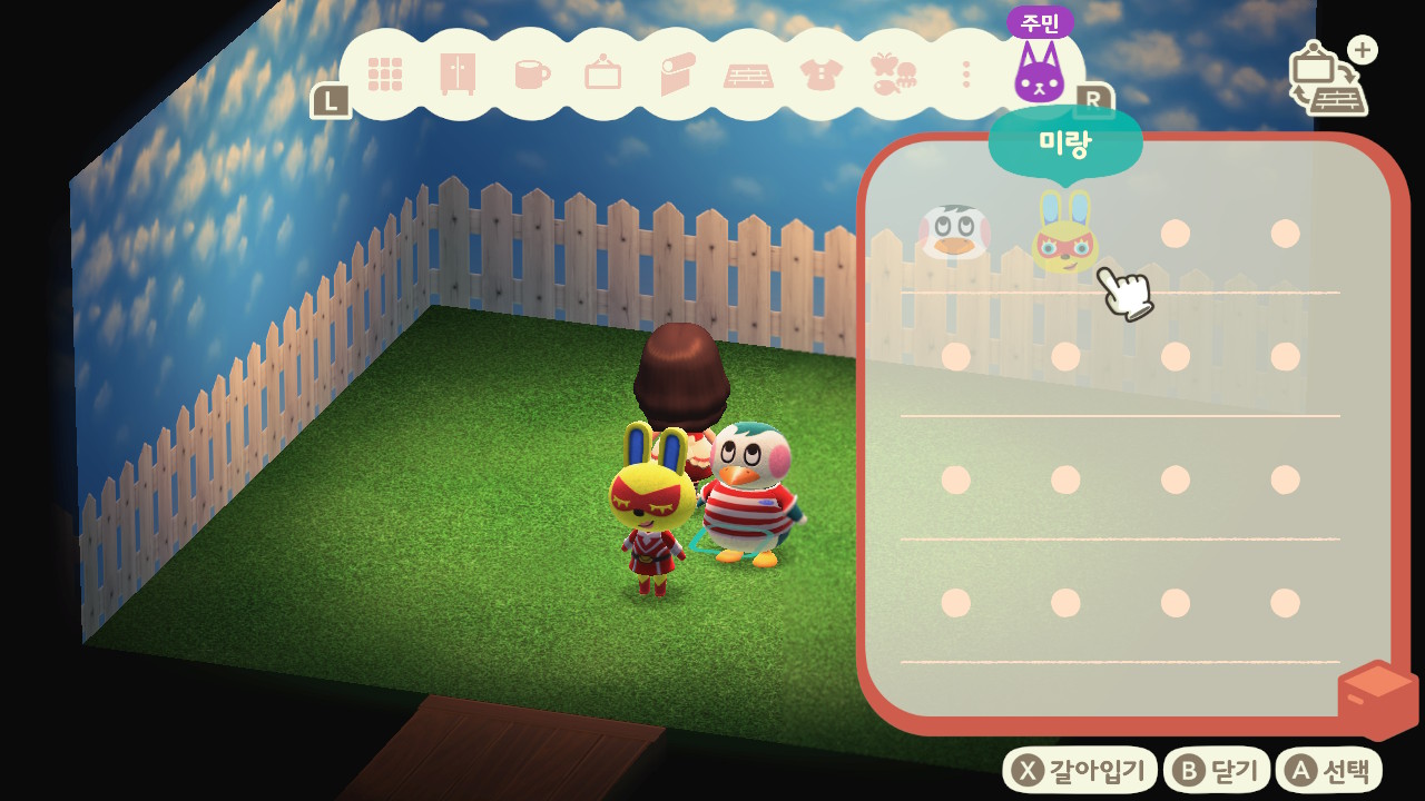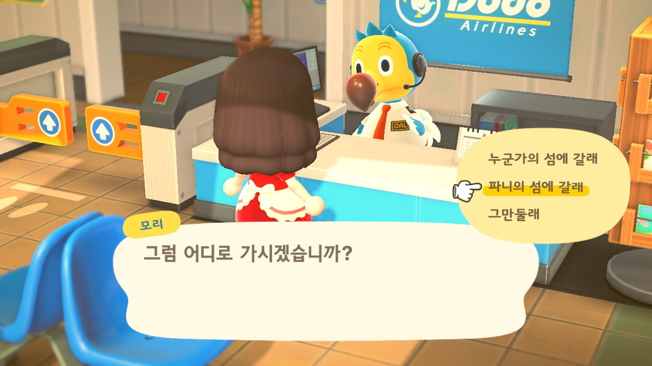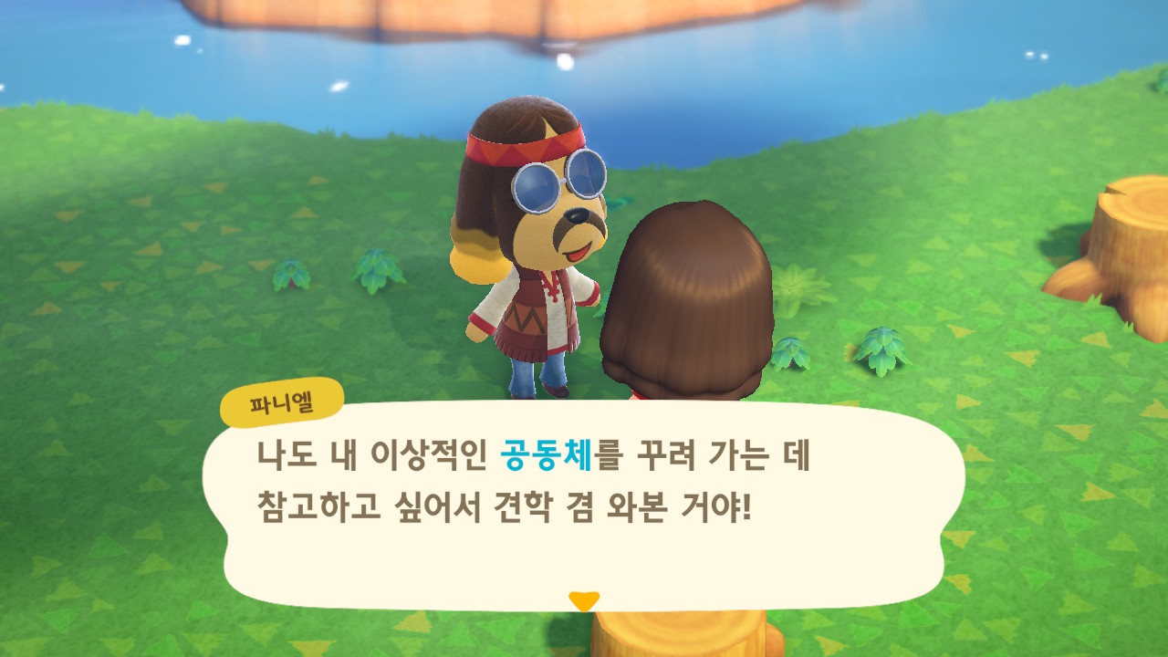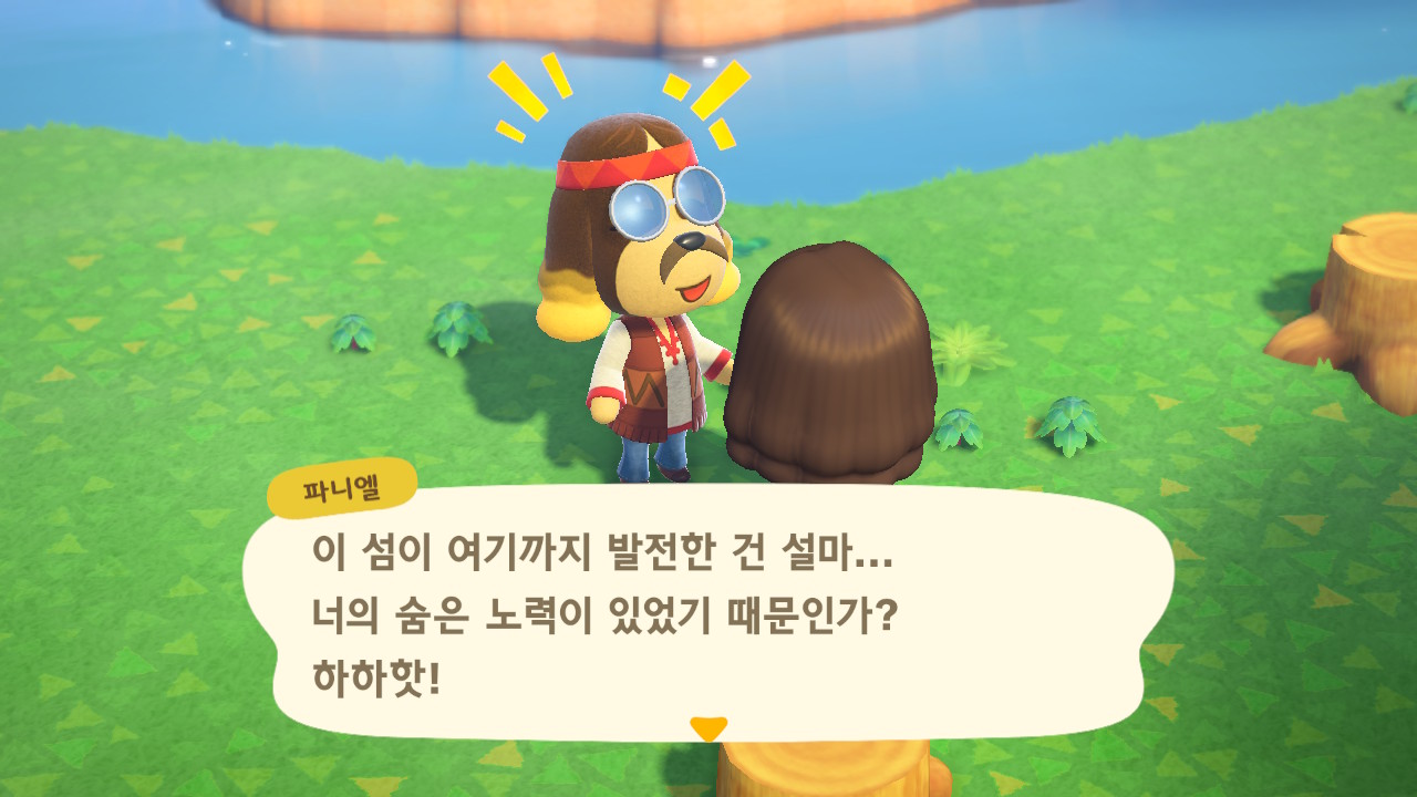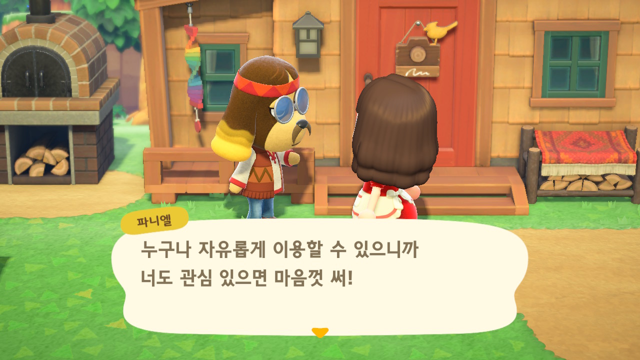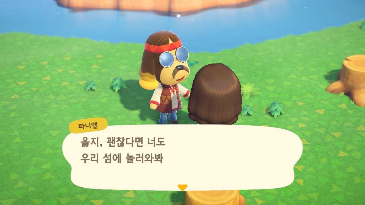 3일차에 파니엘이 나타났어요. 비행장에서 파니의 섬에 가고 싶다고 하면 갈 수 있고, 촬영 스튜디오를 꾸밀 수 있습니다. 초기 주민인 김말이 미랑이와 기념 사진을 찍어봤어요. 사진을 찍고 섬으로 돌아오면 너굴포트에서 해당 주민의 포스터를 구입할 수 있어요.
