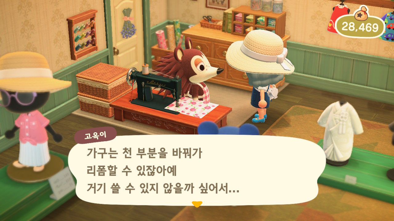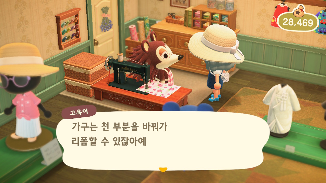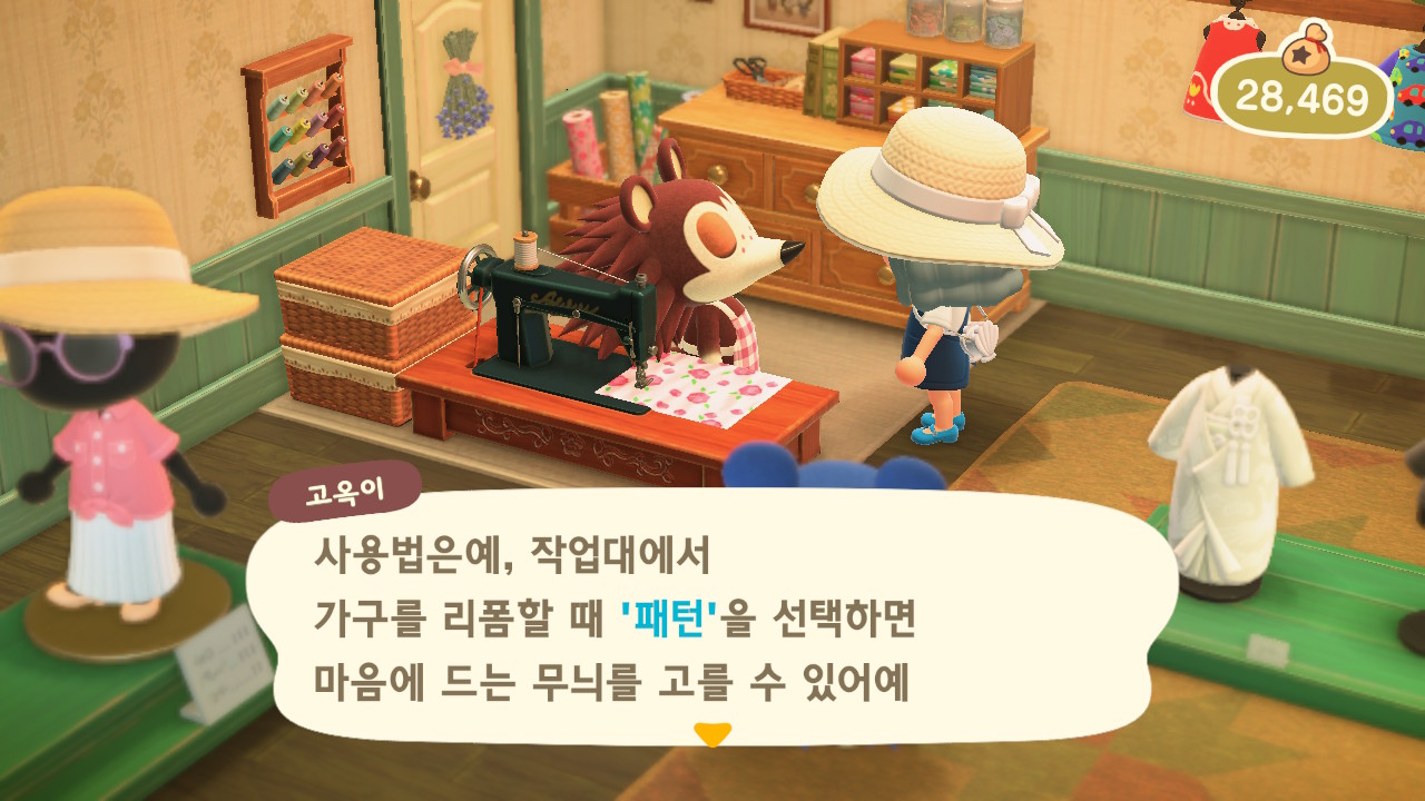 매일 말을 걸었더니 어느 날 패턴을 알려줬어요. 리폼할 때 패턴을 사용해 가구를 꾸밀 수 있게 되었어요.