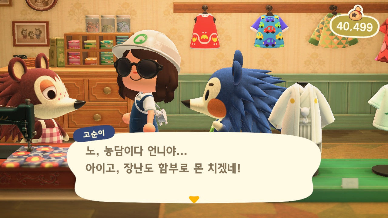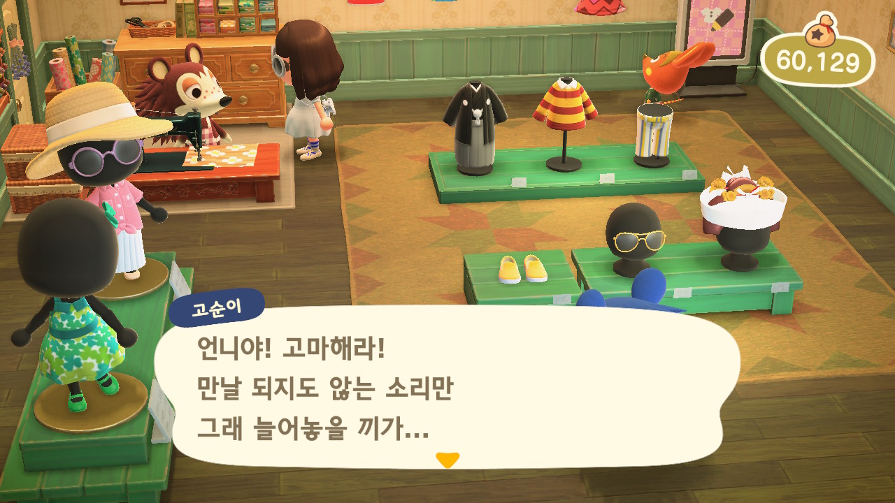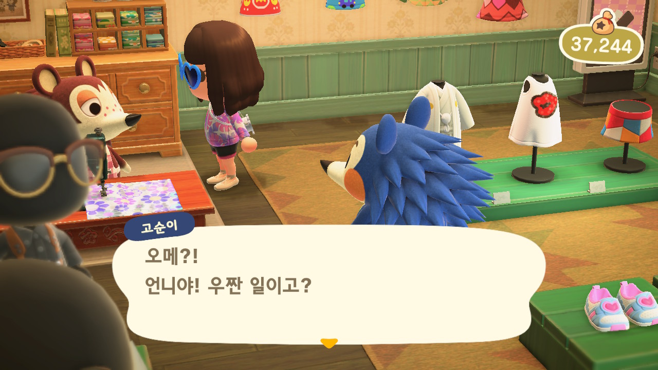 그러던 어느 날, 모동숲 19일차에 고옥이가 고개를 들고 아는척을 합니다!! 웃기까지 하네요!!