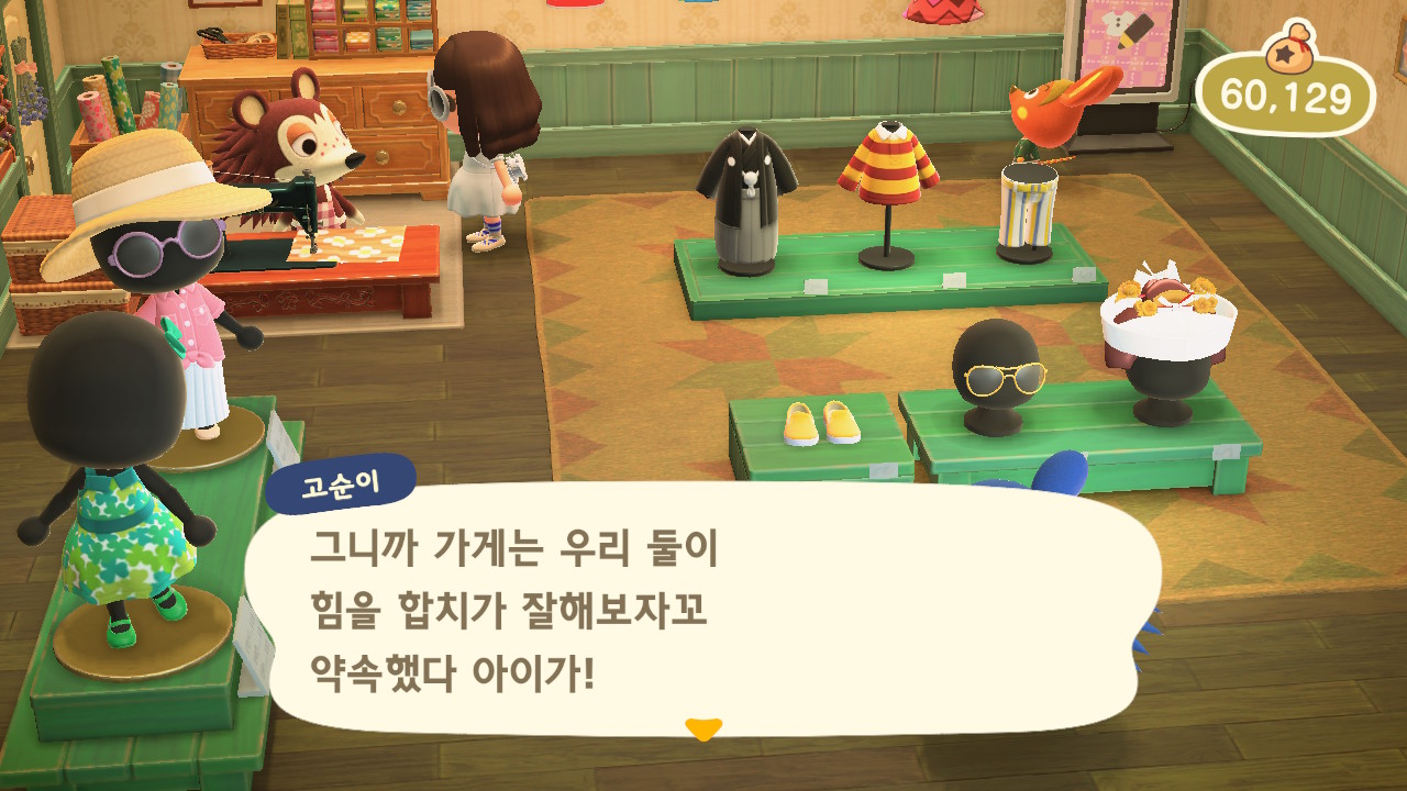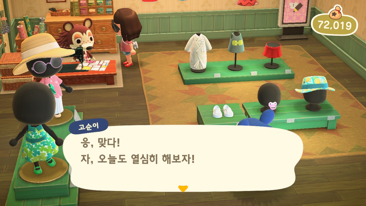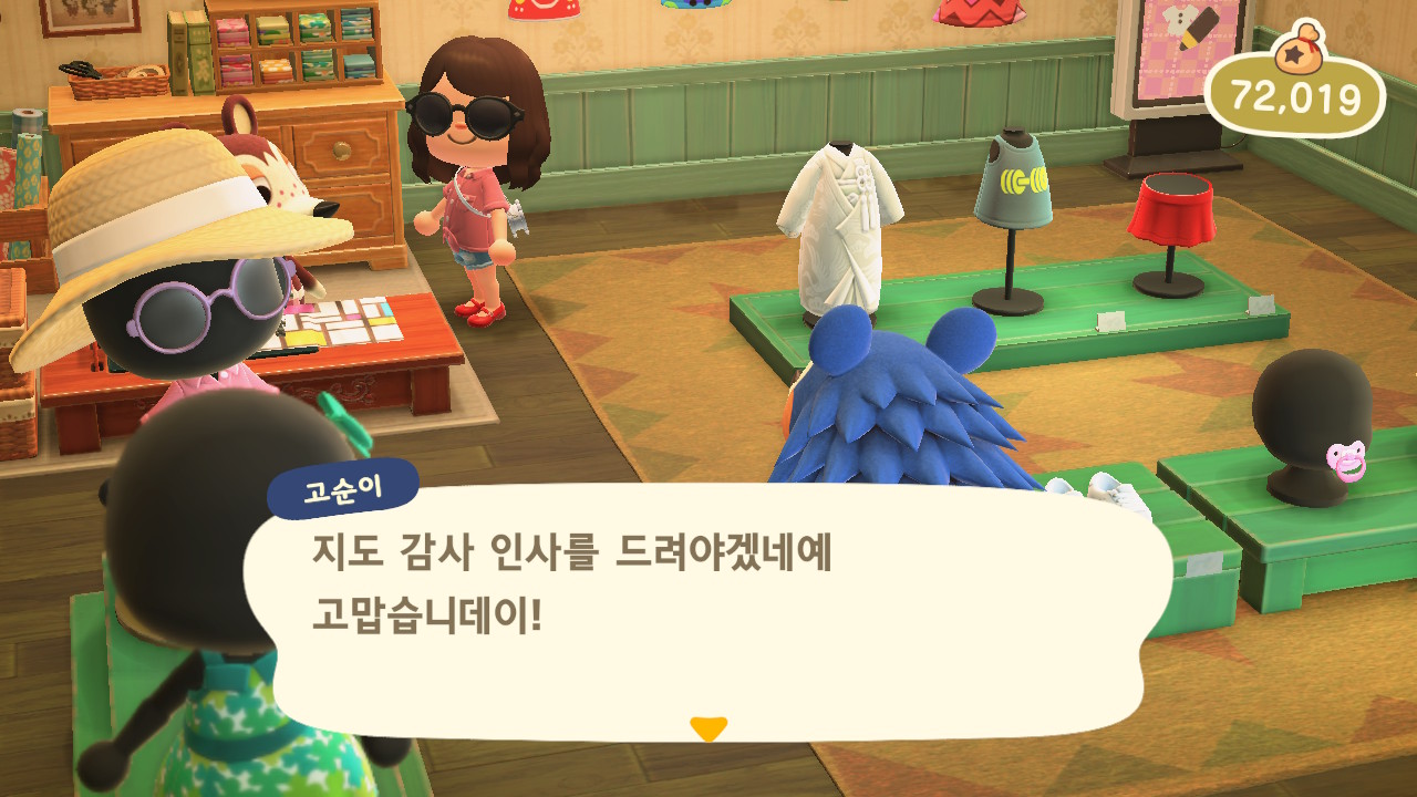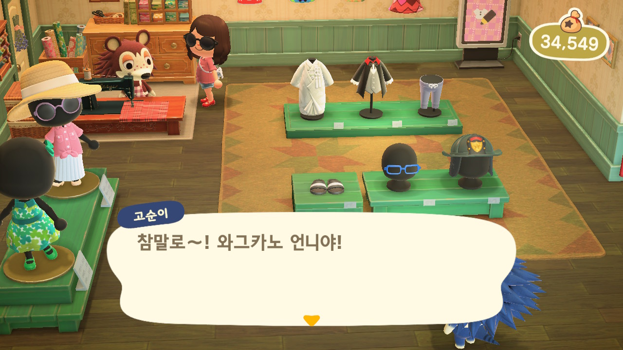 그러던 어느 날, 모동숲 19일차에 고옥이가 고개를 들고 아는척을 합니다!! 웃기까지 하네요!!