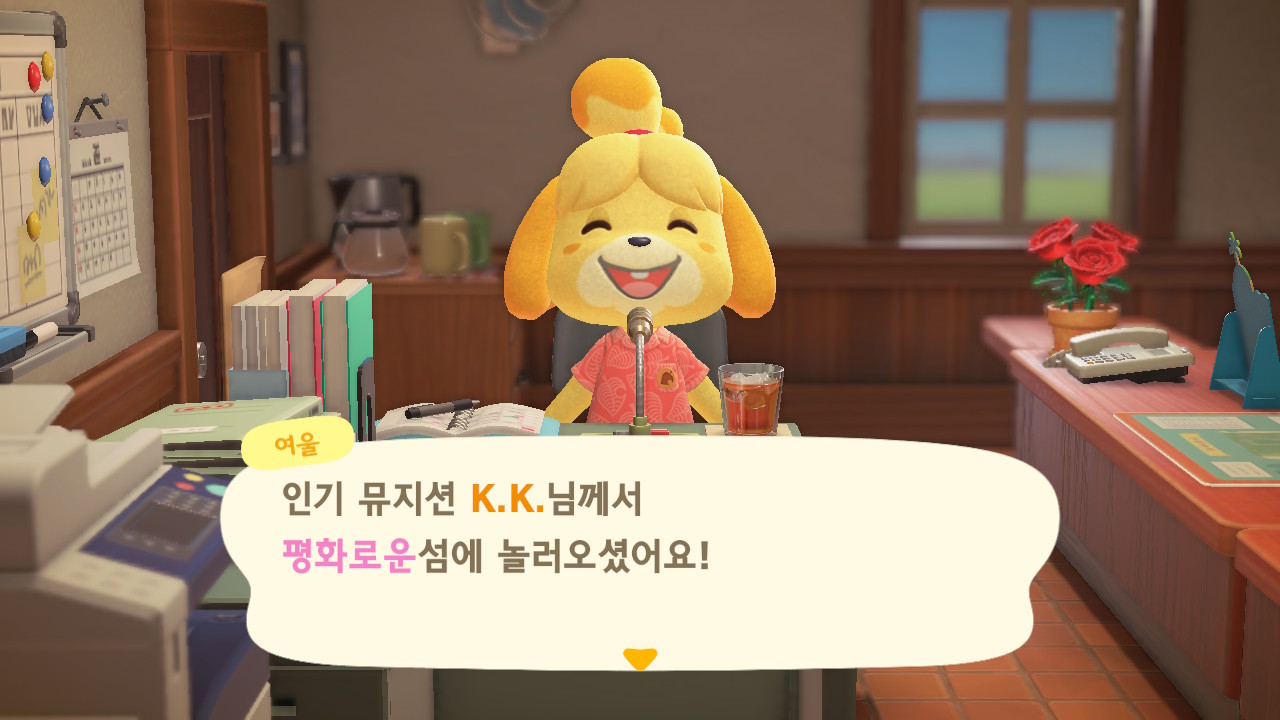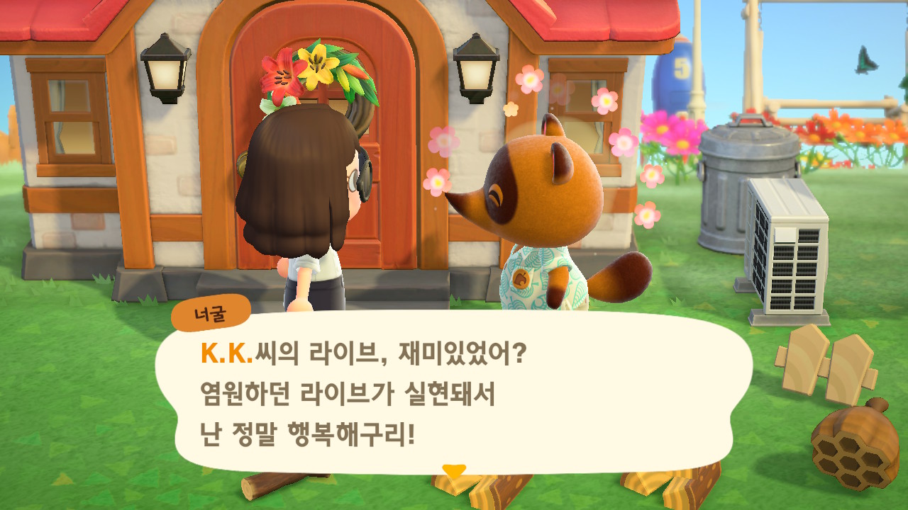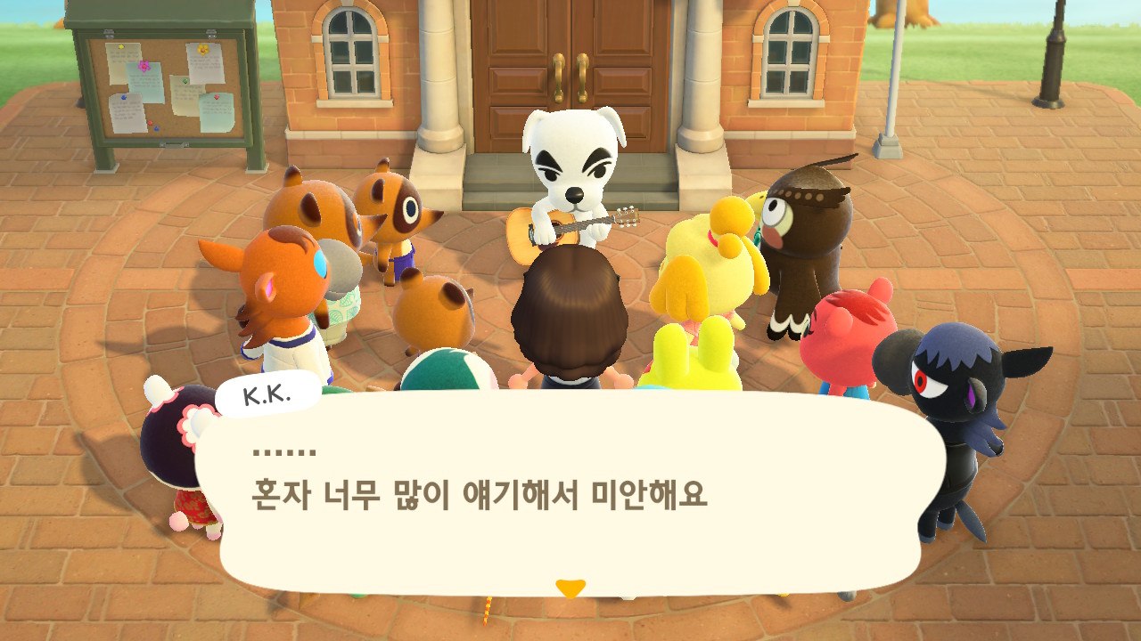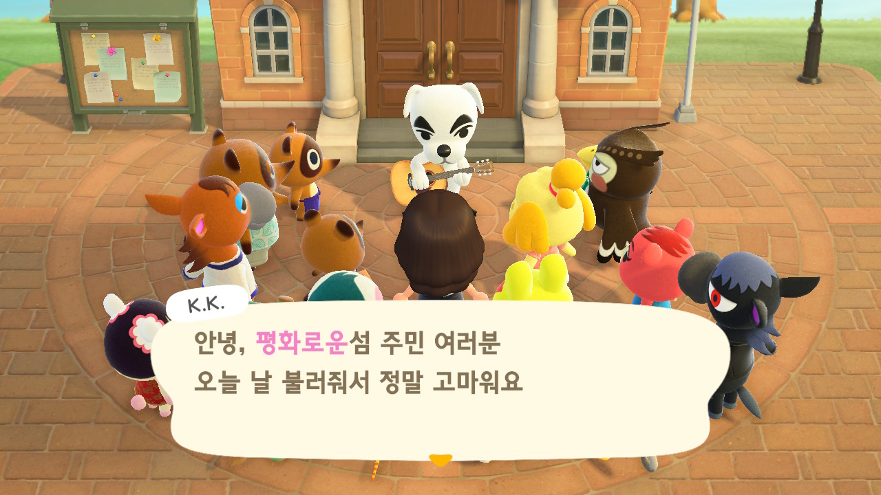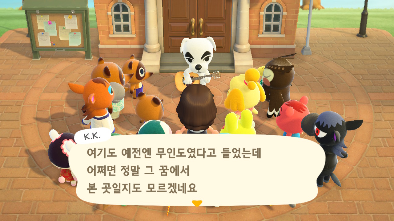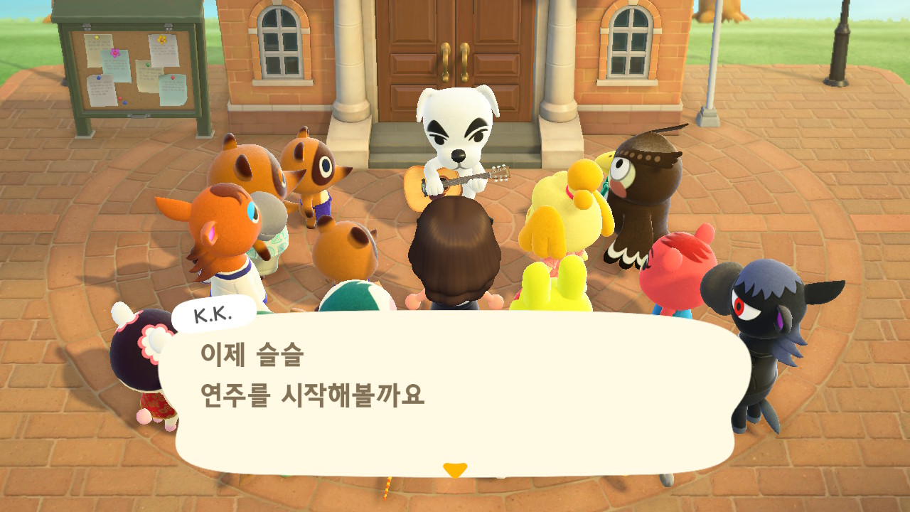 드디어 주민 10명이 되었고, 섬 평판 별 3개 달성하여 K.K. 라이브가 열렸습니다.