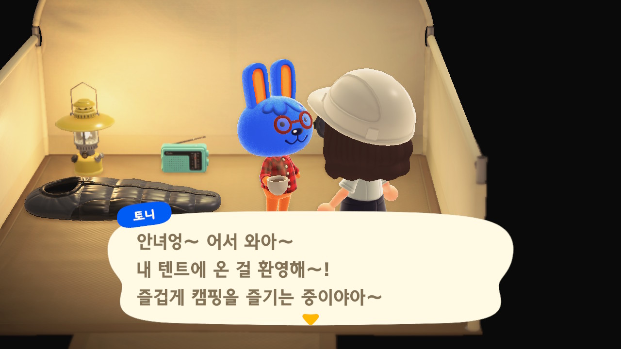 10번째 주민이 모두 생기자마자 캠핑장에 손님이 왔어요. 토니가 왔는데 아직 10명 주민들 중 내보내고 싶은 주민이 없어서 영입하지는 않았어요.