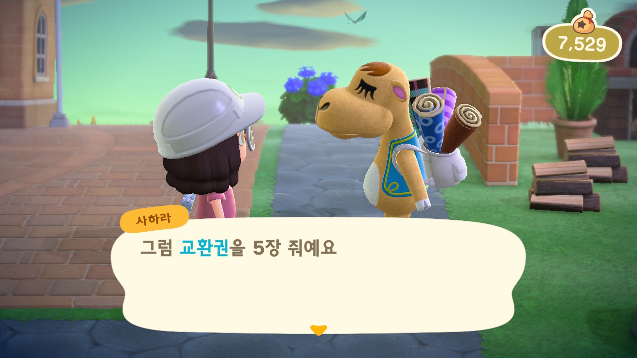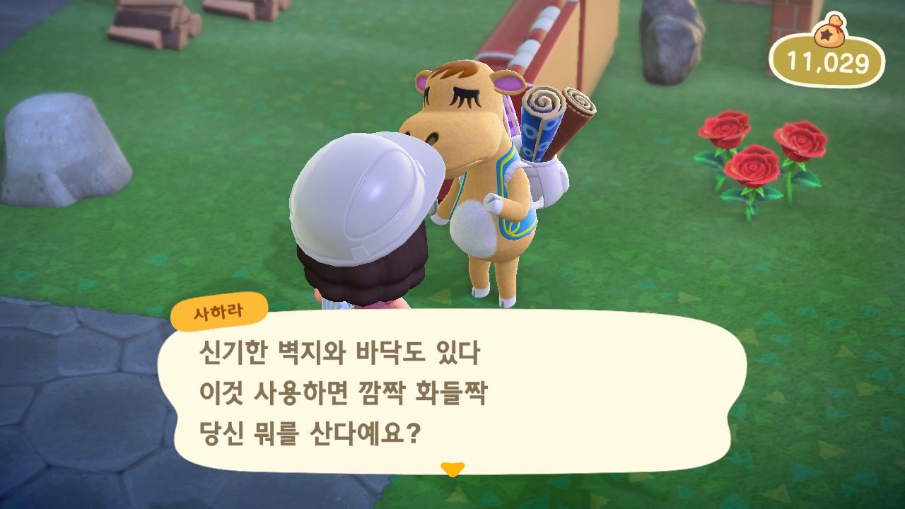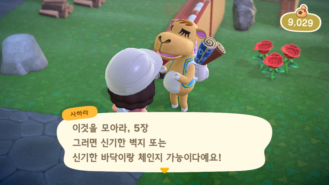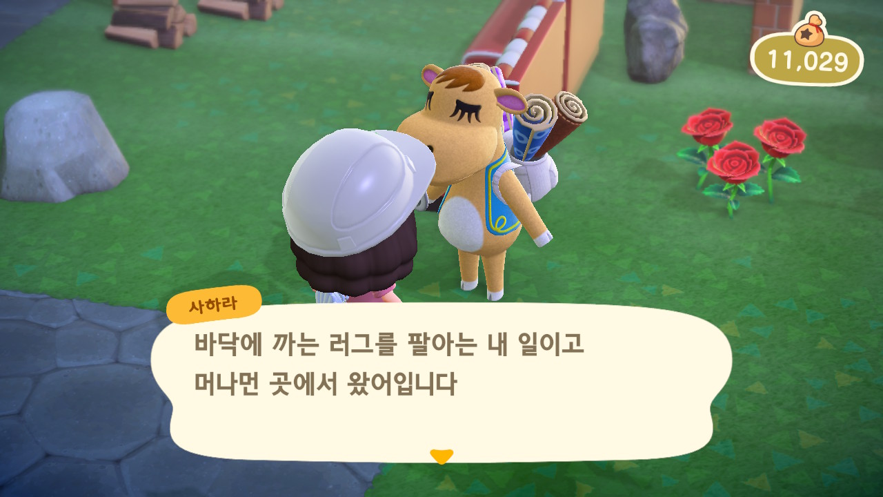 사하라는 러그, 신기한 벽지, 신기한 바닥을 팔아요. 러그는 S, M, L 세 가지 크기가 있어요. 한번 방문 할 때 각 종류별로 한 가지씩만 가져오기 때문에 러그 세종류와 신기한 벽지, 신기한 바닥 각 하나씩 종 다섯 가지를 구입 할 수 있어요. 그리고 러그를 사면 교환권을 주는데 5장을 모으면 벽지나 바닥으로 교환할 수 있어요. 교환으로 받는 벽지와 바닥은 구입한 것과 다른 종류로 받을 수 있어요.