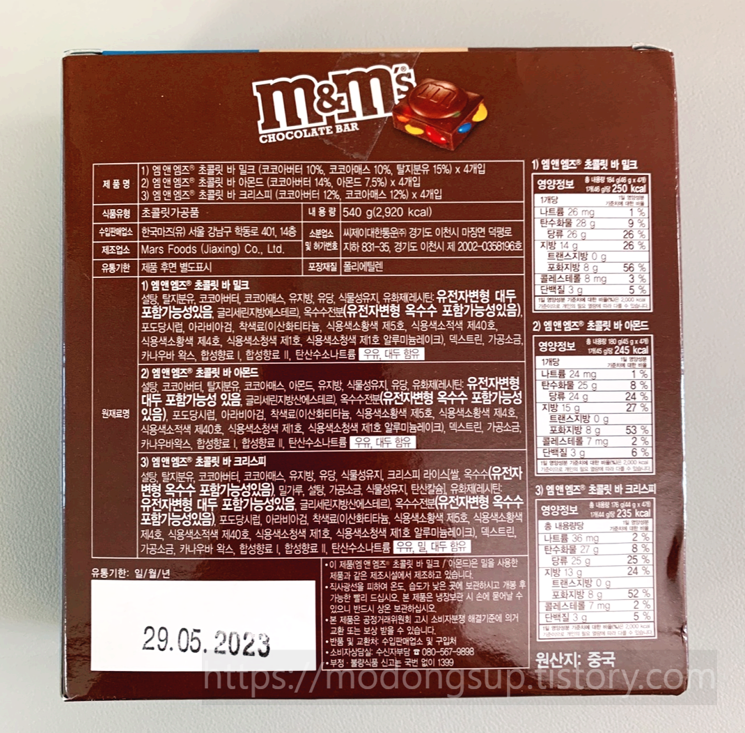 오늘은 엠앤엠즈 초콜릿 바를 소개합니다.