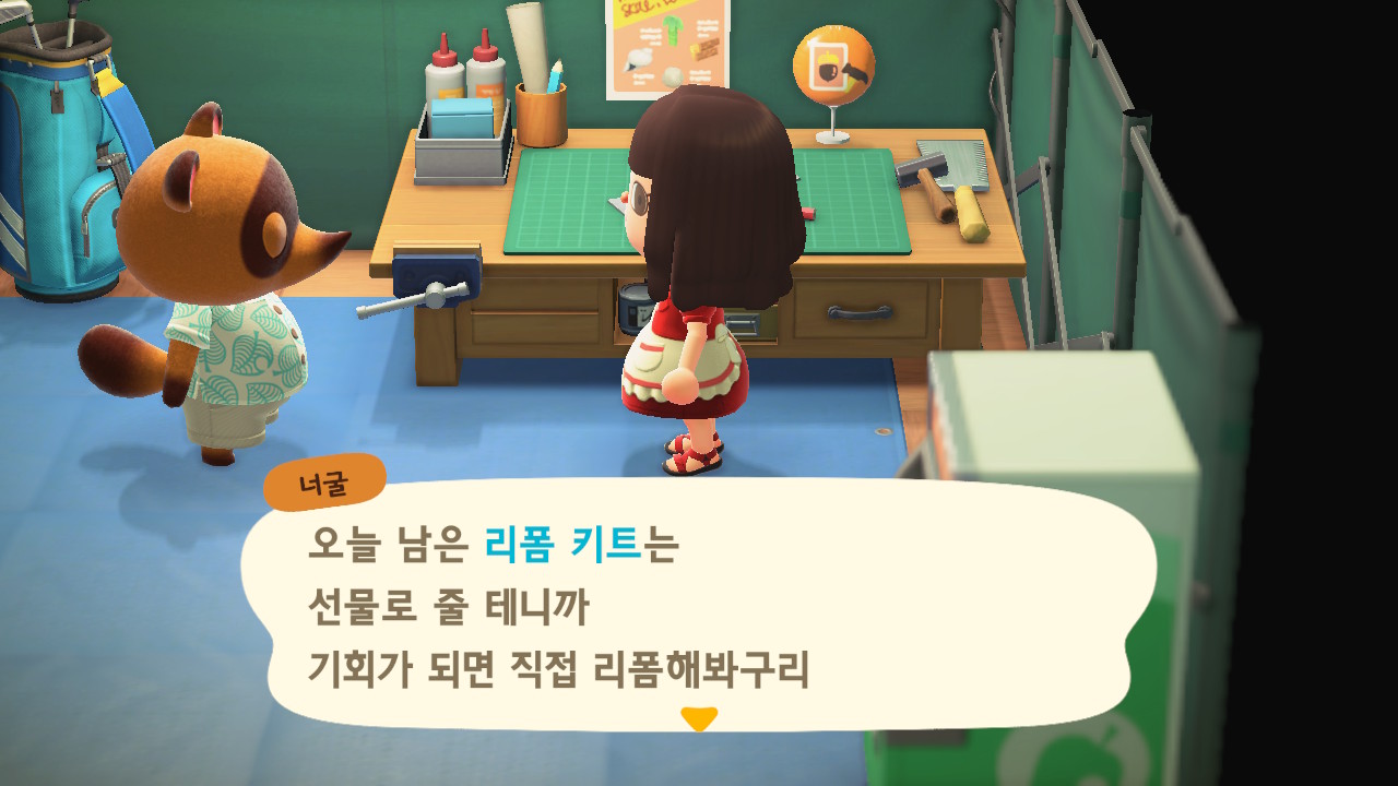 리폼 체험 워크숍에 참가하면 너굴이가 목제 옷장 레시피를 보내줍니다. 목제 옷장을 만들어가면 리폼 방법을 알려줍니다.